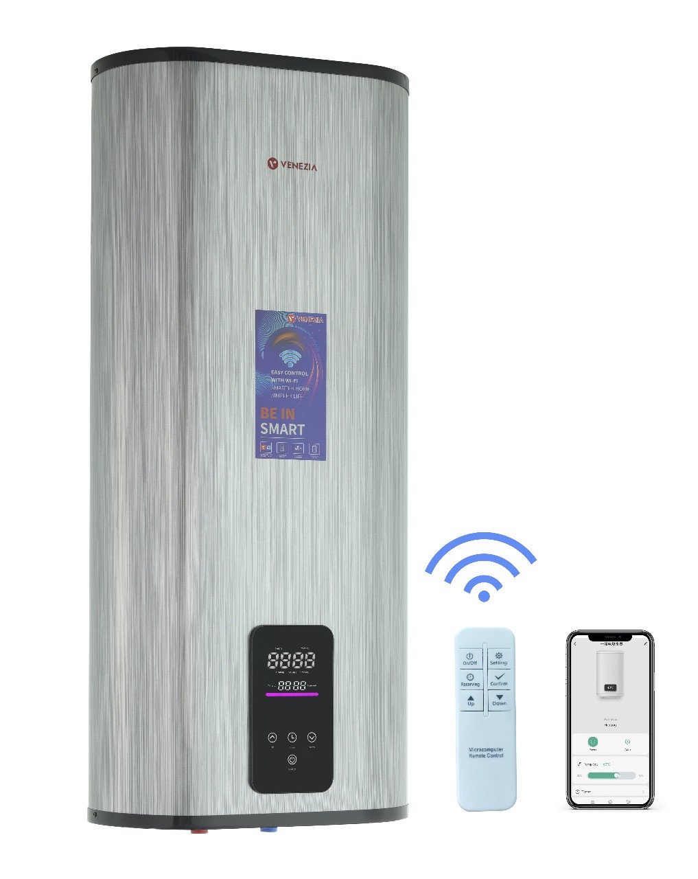 Le Chauffe-eau Électrique Slim WIFI venezia est un appareil compact de 30L / 50L, équipé de technologie Wi-Fi pour contrôler à distance la température et programmer son fonctionnement, offrant une protection contre la surchauffe et la surpression, avec un réservoir en inox et un design moderne, idéal pour optimiser l'efficacité énergétique et garantir une sécurité optimale
