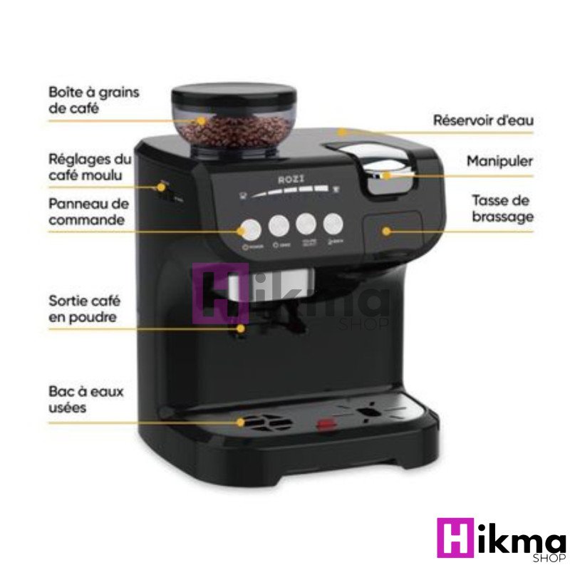 【Moulin】Moulin à café inclus, avec sélecteur de niveau de mouture pour un café fraîchement moulu instantanément.